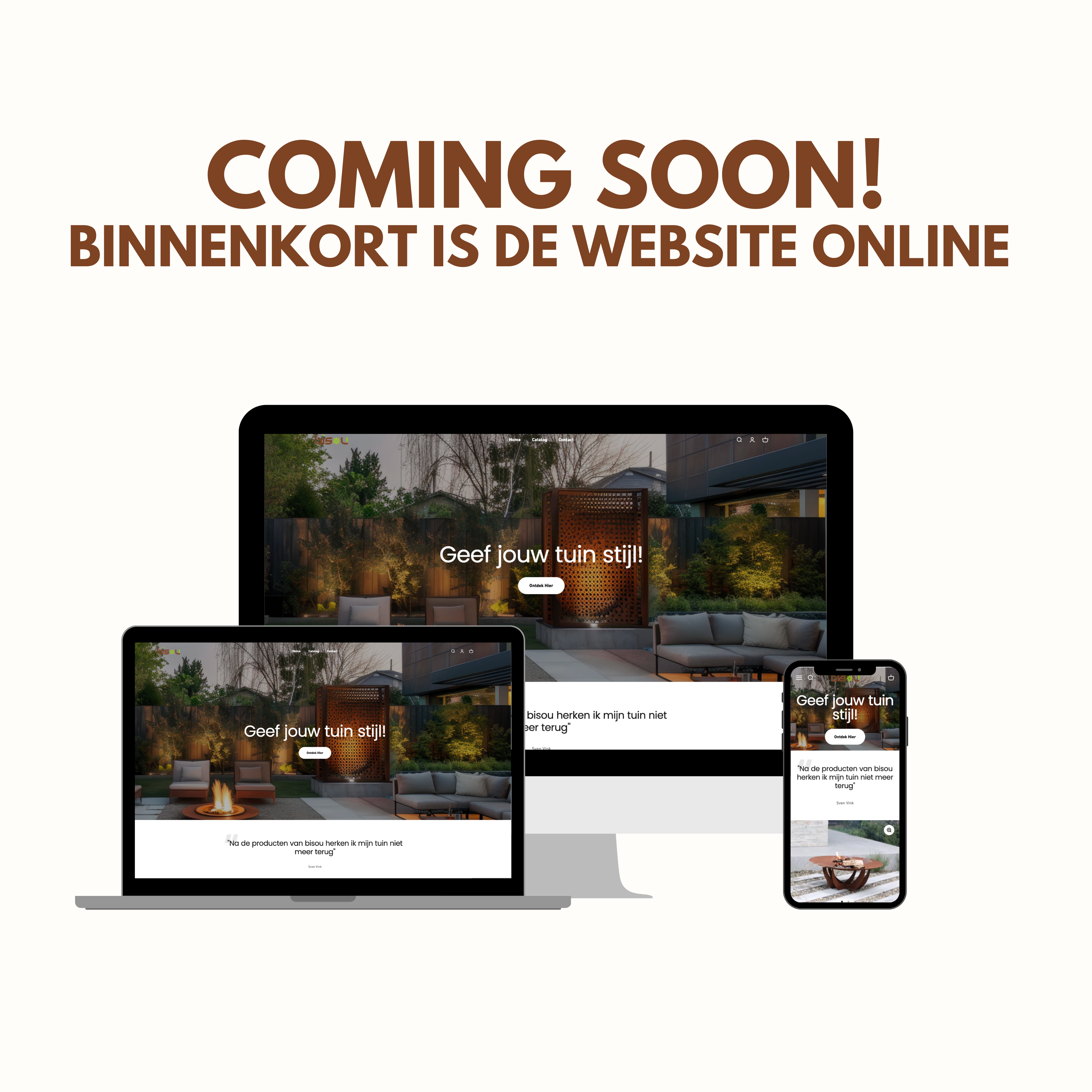 Bij Bisou draait alles om buitenleven met karakter. Wij geloven dat buiten zijn net zo comfortabel en stijlvol mag zijn als binnen. Daarom ontwerpen en maken we producten die rust, schoonheid en balans brengen in elke buitenruimte. Alles wat we doen, doen we met aandacht voor design, detail en duurzaamheid.
